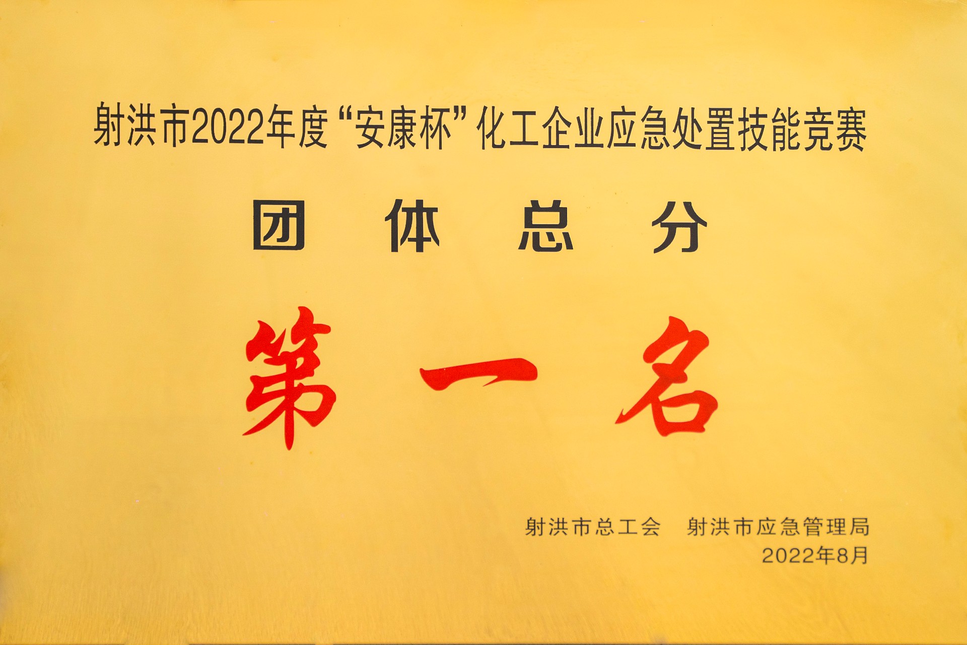射洪市2022年度“安康杯“”化工企業(yè)應(yīng)急處置技能競賽 團(tuán)體總分 第一名