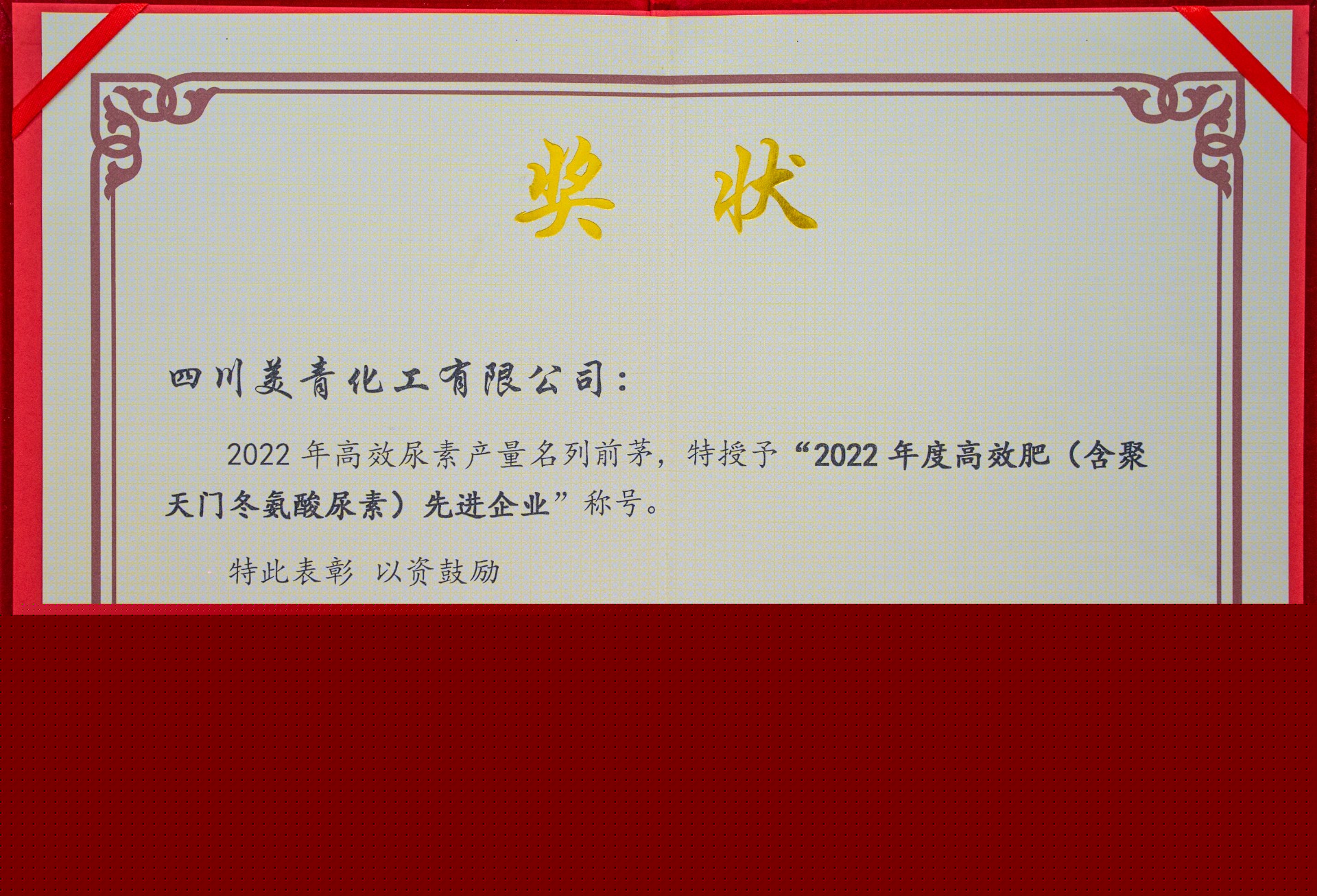 “2022年度高效肥(含聚天門冬氨酸尿素)先進(jìn)企業(yè)”稱號