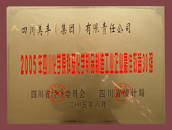 2005年四川化學(xué)原料及化學(xué)制品制造工業(yè)企業(yè)最佳效益30強(qiáng)