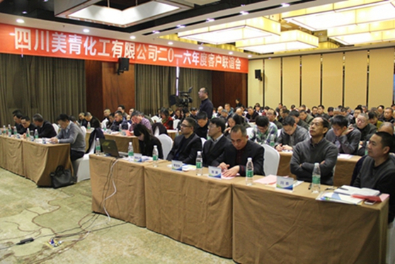 2016.01.13真誠(chéng)守信、互助共贏,開(kāi)啟廠商合作的新局面——美青化工圓滿舉辦2015年度客戶聯(lián)誼會(huì)碩果辭舊歲,瑞雪迎新年;羊舞豐收年,猴吟錦繡春。元旦剛過(guò)、春節(jié)即將來(lái)臨之際,四川美青化工有限公司、美青營(yíng)銷公司在射洪永逸酒店召開(kāi)客戶聯(lián)誼會(huì),70余名來(lái)自大江南北的經(jīng)銷商朋友歡聚一堂,共敘合作情誼,共謀發(fā)了解更多