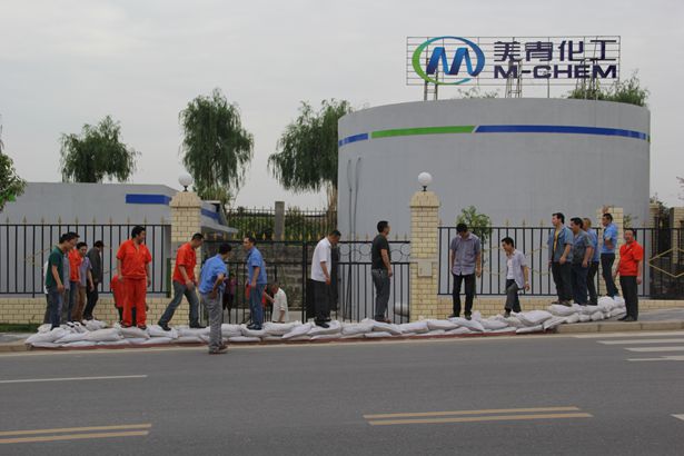 2014.05.30公司應(yīng)急隊(duì)認(rèn)真執(zhí)行防洪任務(wù)據(jù)悉,濱江路改造后,我公司涪江取水站正好處于下坡路段,地勢低洼且門口減水溝設(shè)計(jì)的排水口太小,若遇大雨將極易倒灌入雨水,嚴(yán)重危及公司財(cái)產(chǎn)和員工生命安全。5月20日下午16:20,應(yīng)急隊(duì)員們接公司應(yīng)急辦通知后緊急了解更多