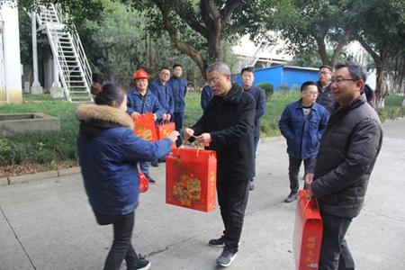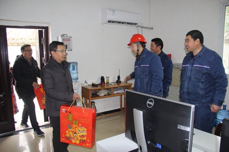 “同志們辛苦了,你們?cè)诖汗?jié)期間堅(jiān)守自己的崗位,工作很辛苦,希望你們繼續(xù)發(fā)揚(yáng)吃苦耐勞的優(yōu)良傳統(tǒng),抓好生產(chǎn)現(xiàn)場(chǎng)管理,守好崗、盡好責(zé)。我謹(jǐn)代表公司黨委、經(jīng)理班子,向各位同志及你們的家屬致以新春的問(wèn)候?!比螄?guó)建一行親切地看望在崗員工,與大家一一握手,互致問(wèn)候,并叮囑大家在春節(jié)期間更要嚴(yán)格管理、精心操作,確保設(shè)備安全平穩(wěn)運(yùn)行,生產(chǎn)經(jīng)營(yíng)力爭(zhēng)取得“開(kāi)門(mén)紅”,為公司全面完成2020年各項(xiàng)目標(biāo)任務(wù)打下良好的基礎(chǔ)。
